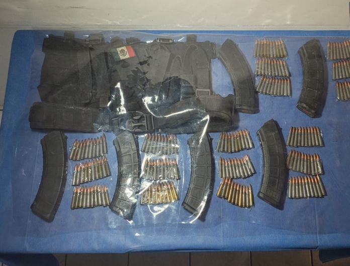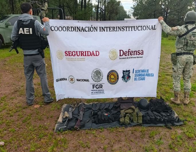 -En Guadalupe y Calvo, elementos del Ejército Mexicano y Fiscalía Estatal aseguraron dos armas largas, 25 cargadores, 580 cartuchos, equipo táctico y un casco balístico.