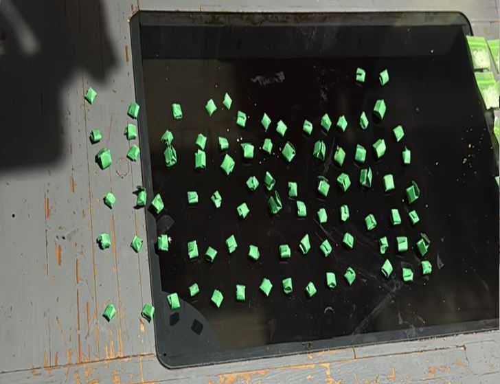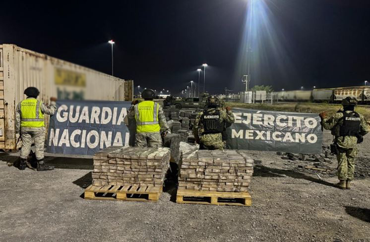 -En Nuevo Laredo, elementos de GN y Ejército Mexicano, al realizar una inspección a un contenedor procedente de San Luis Potosí y con destino a Arkansas, Estados Unidos, localizaron 20 tarimas con piedra donde aseguraron 530 kilos de metanfetamina.