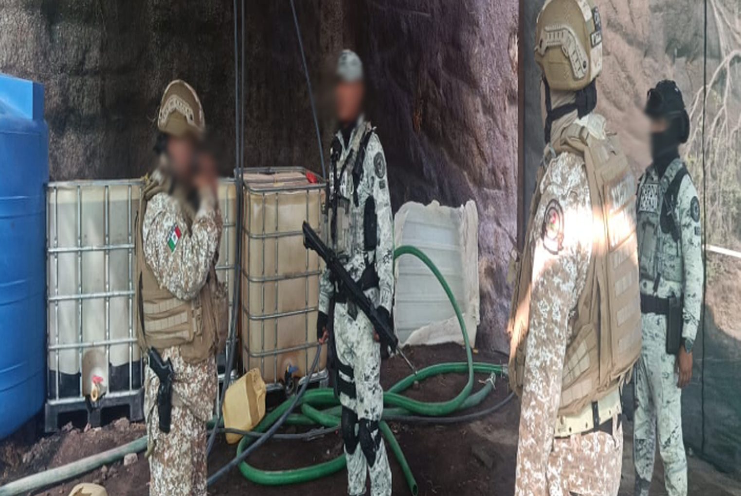 En Guanajuato, elementos de GN y Seguridad Física de PEMEX localizaron e inhabilitaron tres tomas clandestinas, aseguraron 13,500 litros de gasolina, un centro de acopio y 2,000 metros de manguera de alta presión