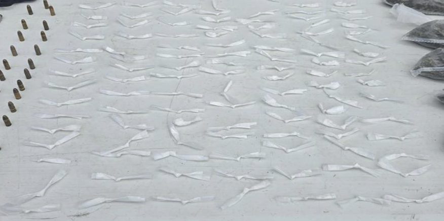 -En Ciudad Juárez, elementos del Ejército Mexicano, Guardia Nacional (GN) y Fiscalía Estatal detuvieron a dos hombres, les aseguraron dos kilos de pastillas de fentanilo, 200 gramos de cocaína en piedra y un kilo de cocaína.