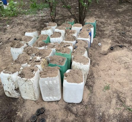 En Culiacán, Sinaloa, en los poblados de El Mirador Sabinito, San Rafael, Nuevo Mundo y El Vizcaíno, elementos del Ejército Mexicano localizaron cuatro áreas de concentración de material diverso para la elaboración de metanfetamina, aseguraron 1,510 litros y 175 kilos de sustancias químicas.