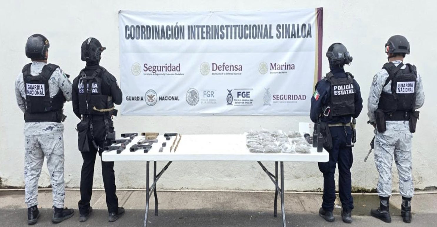 -En Elota, elementos del Ejército Mexicano, al realizar patrullajes de vigilancia detuvieron a una persona, le aseguraron dos armas largas, 21 cargadores, 630 cartuchos, un chaleco táctico, dos placas balísticas, dos mochilas y un teléfono celular.