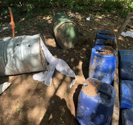 En Guanajuato, elementos de GN y Seguridad Física de PEMEX localizaron e inhabilitaron tres tomas clandestinas, aseguraron 13,500 litros de gasolina, un centro de acopio y 2,000 metros de manguera de alta presión