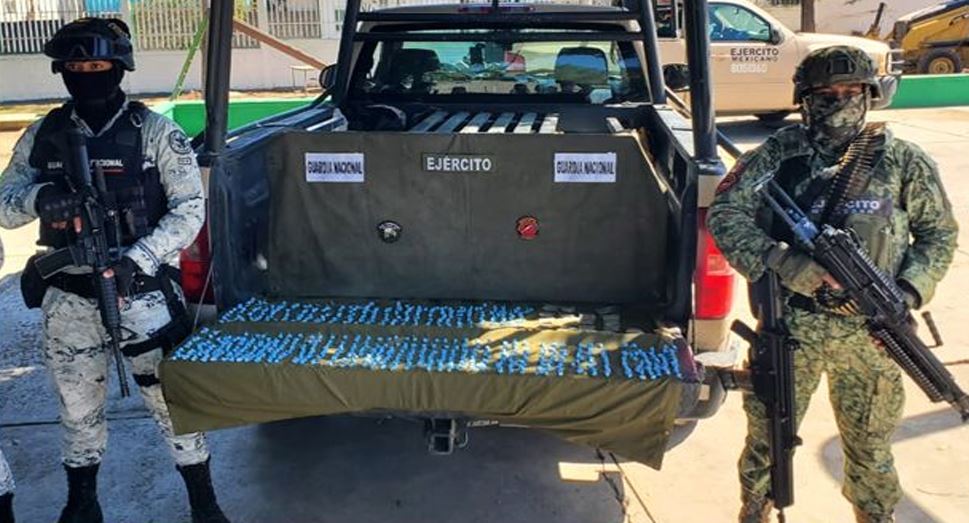 En Huatabampo, se detuvo a una persona, se aseguraron 30 kilos de pastillas de fentanilo, dos kilos de fentanilo en polvo y un vehículo.