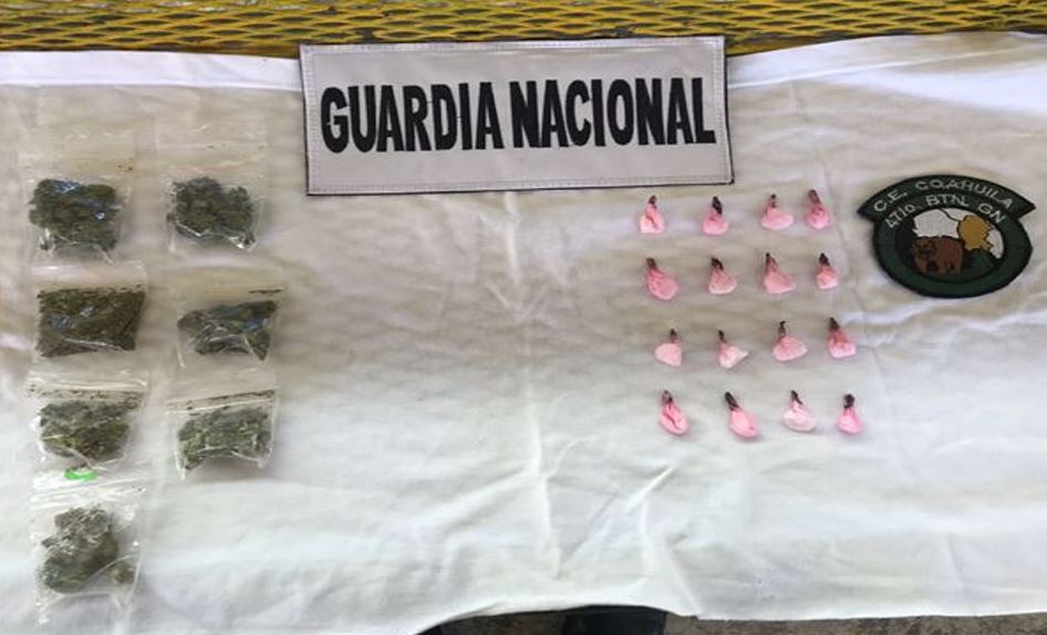 Se detuvo a dos personas, una de nacionalidad estadounidense, se aseguraron tres cargadores, 123 cartuchos, 790 dosis de metanfetamina, 229 dosis de marihuana, cinco frascos con aceite de cannabis y dos vehículos.