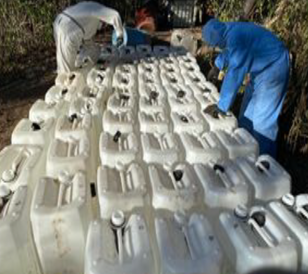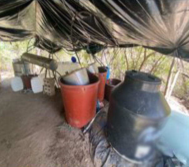 Se localizó e inhabilitó un laboratorio clandestino dedicado a la fabricación de metanfetamina, junto con nueve áreas de concentración de material diverso utilizado en su producción, se aseguraron 8,680 litros y 1,775 kilos de sustancias químicas para la elaboración de la droga, dos reactores de síntesis orgánica, cinco condensadores, dos destiladores, una centrifugadora y una mezcladora. La afectación económica a las organizaciones delictivas se estima en 675 millones de pesos.