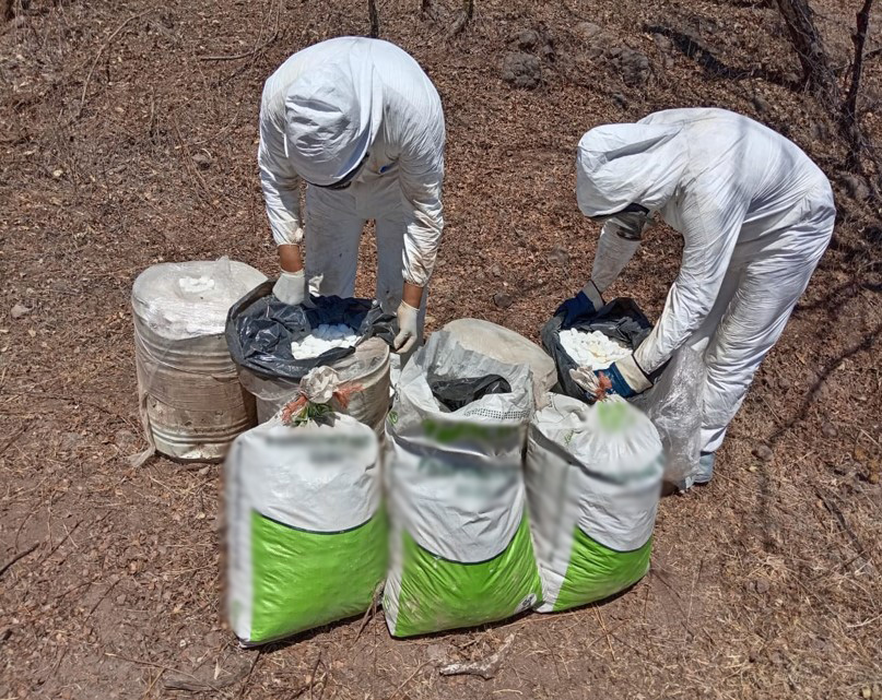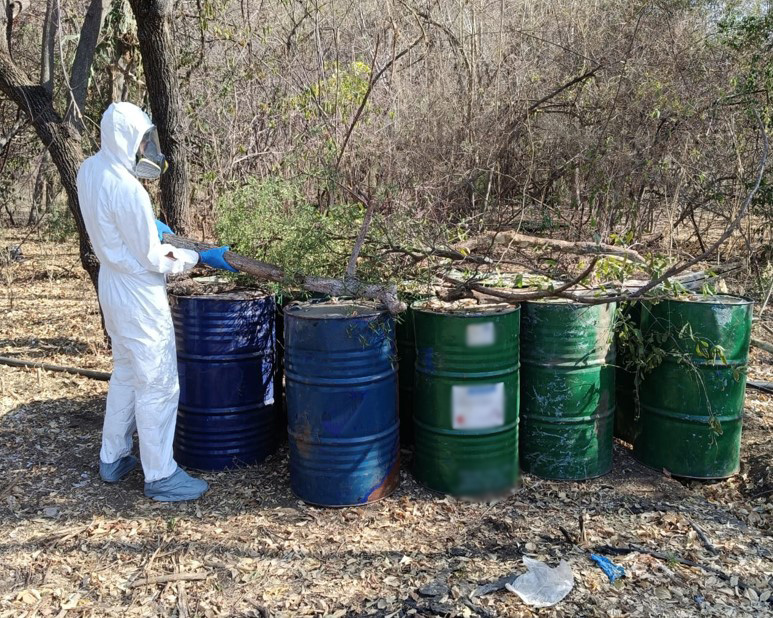 Se localizaron e inhabilitaron cuatro áreas de concentración de material diverso para la elaboración de metanfetamina, donde aseguraron 2,775 litros y 350 kilos de sustancias para la elaboración de la droga y un reactor de síntesis orgánica. La afectación económica a las organizaciones delictivas es de 71 millones de pesos.