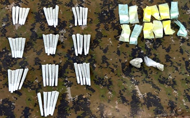 Se detuvo a dos personas, se aseguraron 1,059 dosis de metanfetamina, 79 dosis de marihuana, 12 dosis de cocaína, 50 cigarrillos de marihuana y un vehículo.