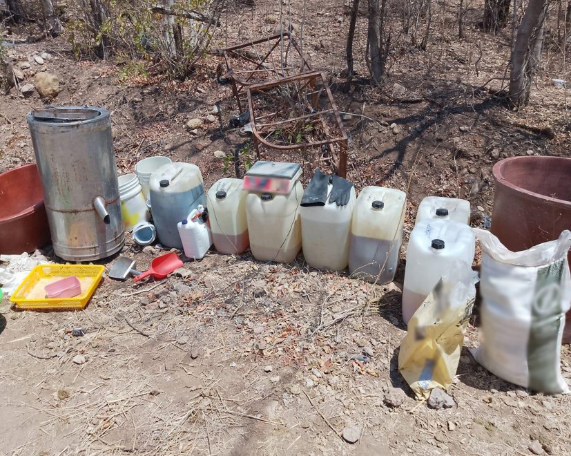Se localizaron e inhabilitaron cuatro áreas de concentración de material diverso para la elaboración de metanfetamina, donde aseguraron 2,775 litros y 350 kilos de sustancias para la elaboración de la droga y un reactor de síntesis orgánica. La afectación económica a las organizaciones delictivas es de 71 millones de pesos.
