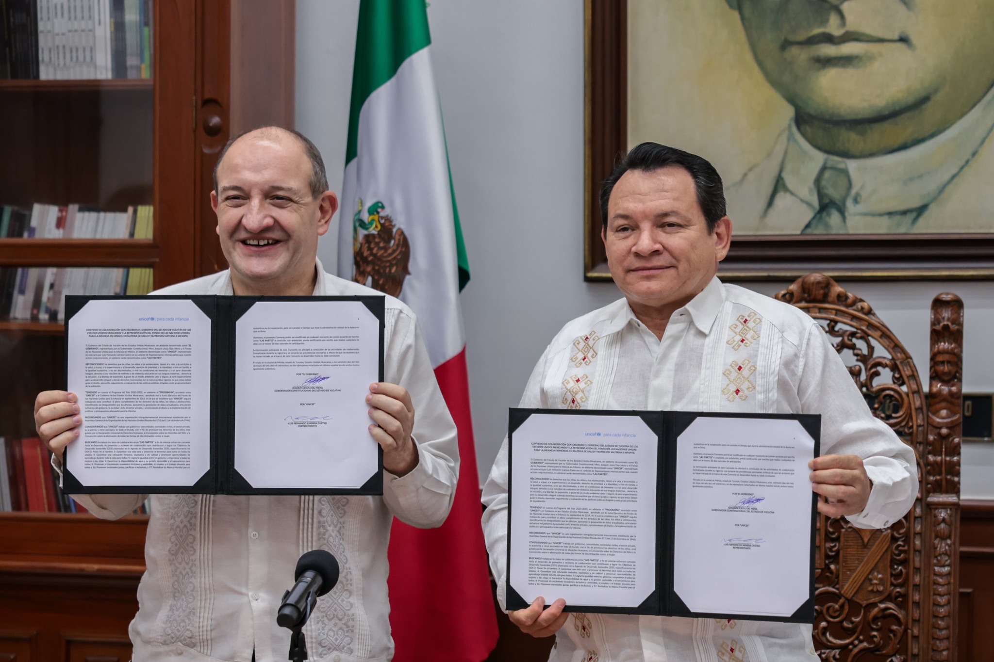Yucatán y UNICEF firman un convenio para priorizar la salud, nutrición, educación y protección infantil en comunidades vulnerables.