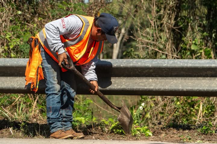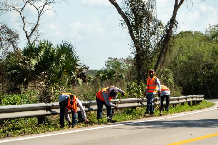 El personal de la Secretaría de Infraestructura para el Bienestar, está realizando trabajos de conservación en la carretera Muna-Maxcanú.