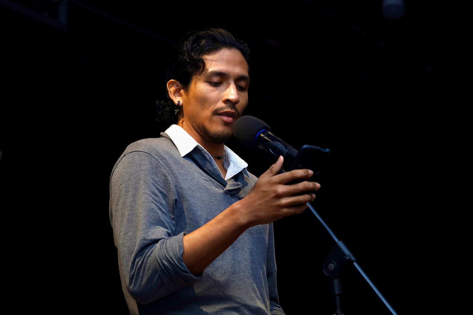 Su primer libro fue editado en 1987, en su natal Cuba. Recitó varios de sus poemas que fueron recibidos con aplausos de los asistentes en el Foro Cultural.