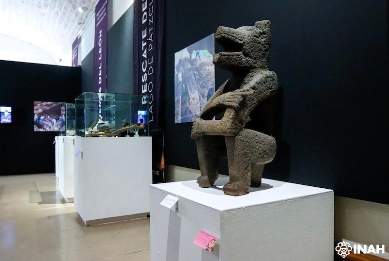 El curador menciona que una de las piezas estelares es la escultura tipo Chac Mool o Waxanuti, su nombre purépecha, descubierta en las obras de un mercado local. Es una talla en basalto, de 90 cm de largo por 80 cm de alto, y 200 kilos, la primera de su tipo localizada en contexto en Pátzcuaro.