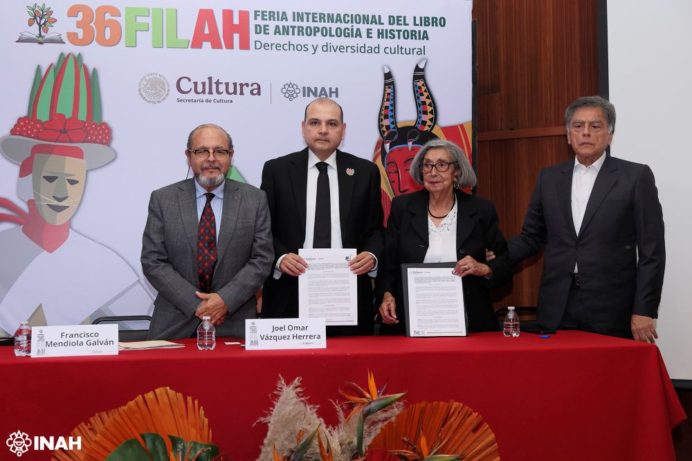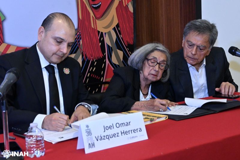 La signatura del documento, encabezada por el director general del INAH, Joel Omar Vázquez Herrera, y la viuda de Alberto Ruz, Celia Gutiérrez Ibarra, tuvo lugar en el Museo Nacional de Antropología, durante la 36 Feria Internacional del Libro de Antropología e Historia (FILAH).