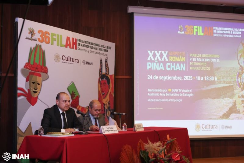 En el evento académico estuvieron el secretario técnico del INAH, José Luis Perea González, y el coordinador nacional de Arqueología, Francisco Mendiola Galván.
