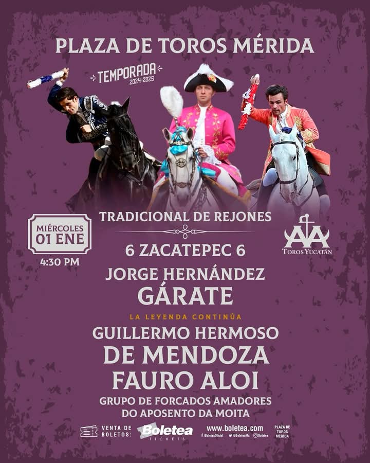 Para el 2025 visitarán la capital yucateca el maestro Jorge Hernández Garate, quien será acompañado del español Guillermo Hermoso de Mendoza, hijo de Pablo Hermoso de Mendoza, además del joven Fauro Aloi, figura en ascenso y quien de a poco se abre carrera en dicho deporte.