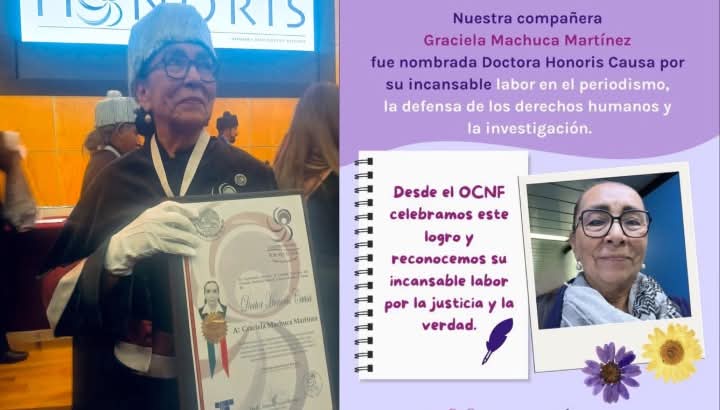 Graciela recibió del claustro doctoral Honoris causa A.C el Honoris causa por su destacada labor de investigación, defensa de los derechos humanos y en lo global por su trayectoria como comunicadora humanista.
