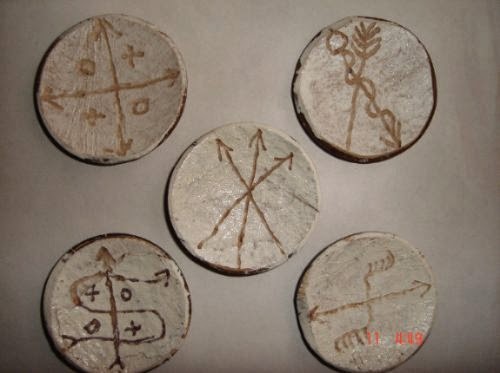 En los rituales cotidianos, las firmas se dibujan usualmente con yeso blanco (cascarilla), polvo de carbón, tizas amarillas, tierra de diferentes tipos, sal o efun (yeso africano).