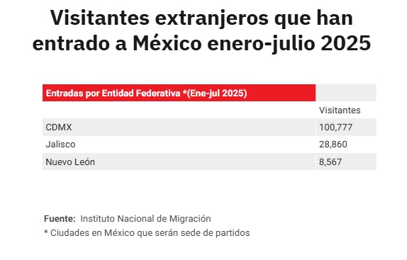 En México, las anfitrionas del Mundial son Ciudad de México, Guadalajara y Monterrey. Hasta ahora, el gobierno mexicano ha asumido una postura optimista, pero moderada en número de visitantes y derrama económica, pues según la Secretaría de Turismo (Sectur) se esperan 5.5 millones de turistas.