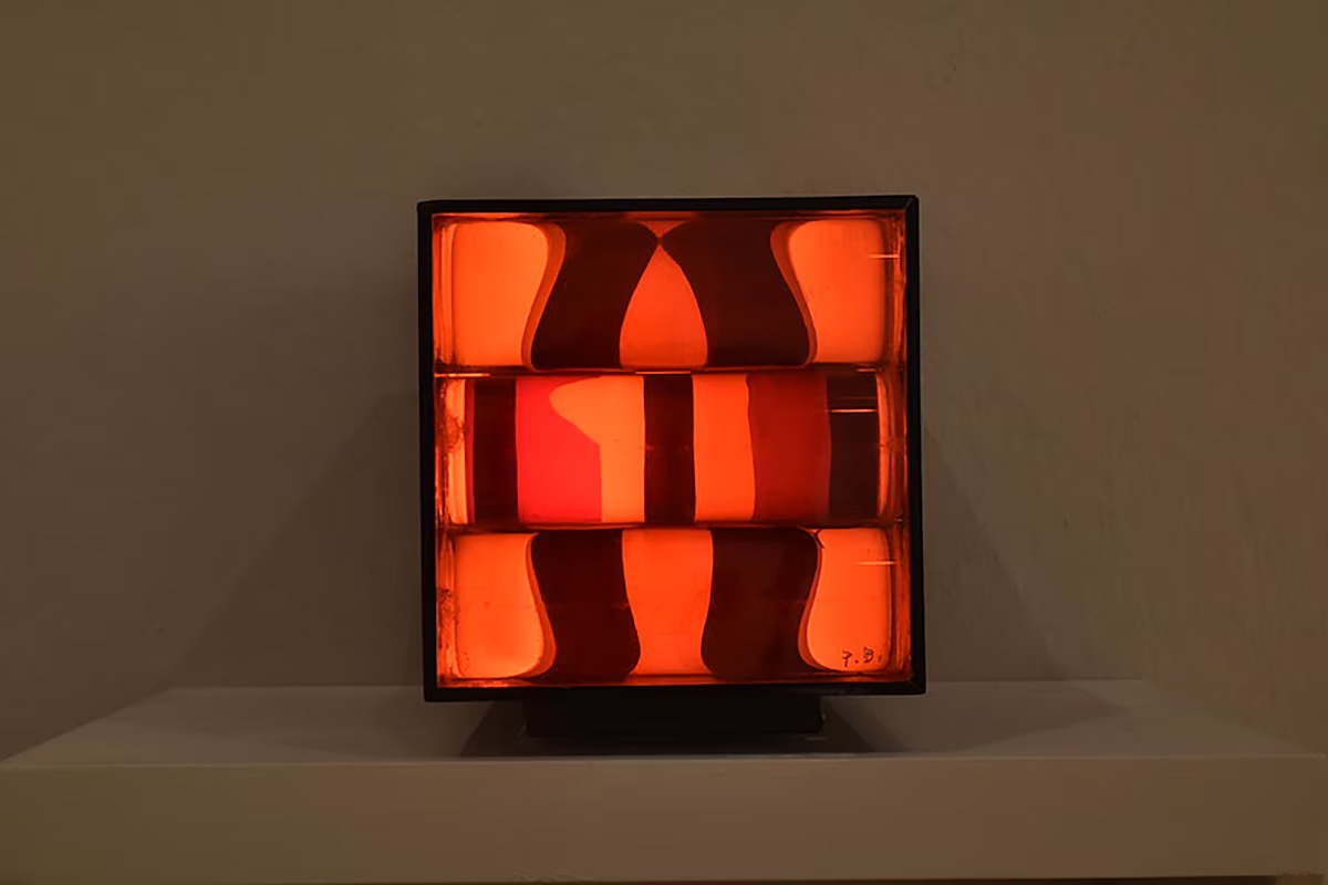 Entre las obras expuestas se encuentran cajas, relieves y columnas que, mediante mecanismos internos, generan efectos ópticos y lumínicos, resultado de investigaciones que ambos artistas han desarrollado desde los años 60 hasta la actualidad.
