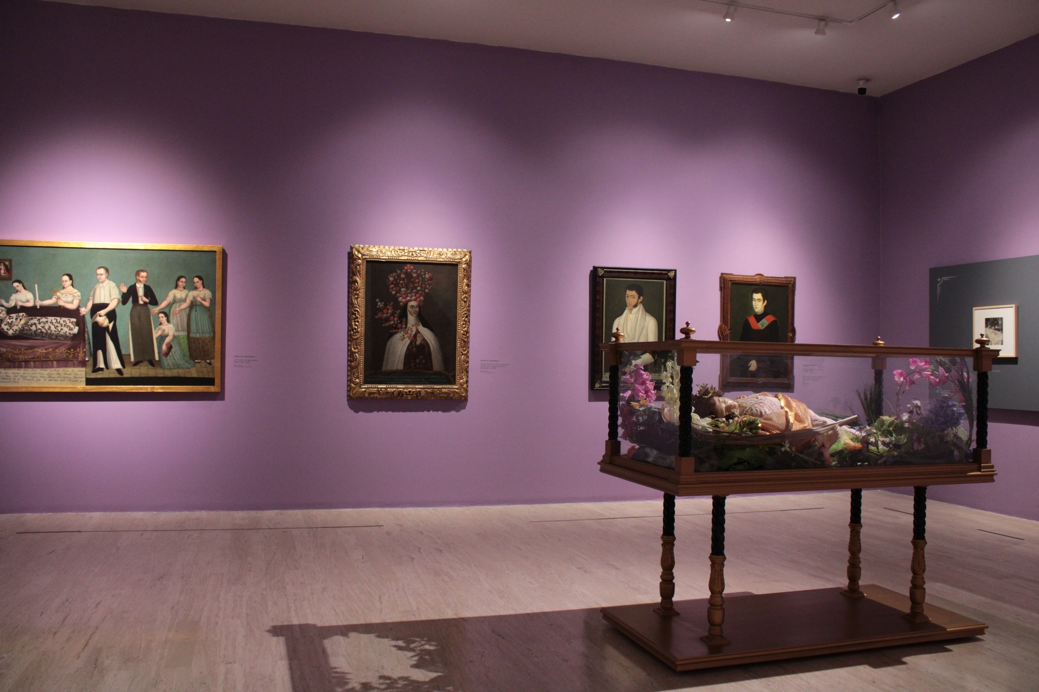 La muestra integra 180 piezas provenientes de 30 colecciones públicas y privadas, entre pinturas, esculturas, fotografías, figuras de cera, títeres, botones, lápidas, utensilios médicos, indumentaria de duelo y guardapelos, a través de los cuales se ofrece una reflexión sobre los rituales, costumbres y actitudes ante el duelo.