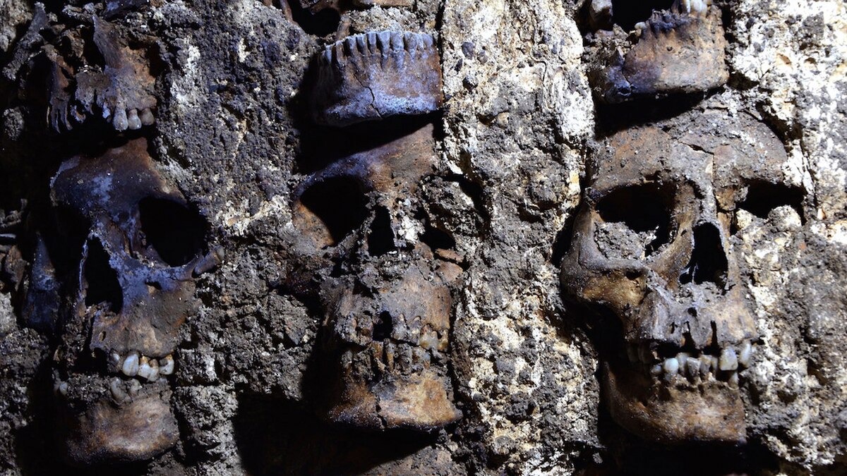 En un predio ubicado en Guatemala 24, a espaldas de la Catedral y en pleno corazón del Centro Histórico, aparecieron los restos de un monumento que los arqueólogos llevaban buscando mucho tiempo: el Huei Tzompantli: el gran altar construido con los cráneos de los sacrificados en honor de Huitzilopochtli donde, según fray Bernardino de Sahagún, “espetaban las cabezas de los cautivos que allí mataban”.