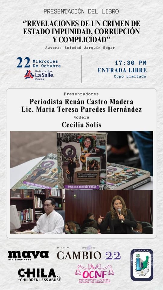 El evento cuenta con el respaldo de Diario CAMBIO 22, Maya Sin Fronteras, CHILA A.C., el Observatorio Ciudadano Nacional del Feminicidio (OCNF), instituciones que impulsan el periodismo y la conciencia social como herramientas para transformar la realidad.
