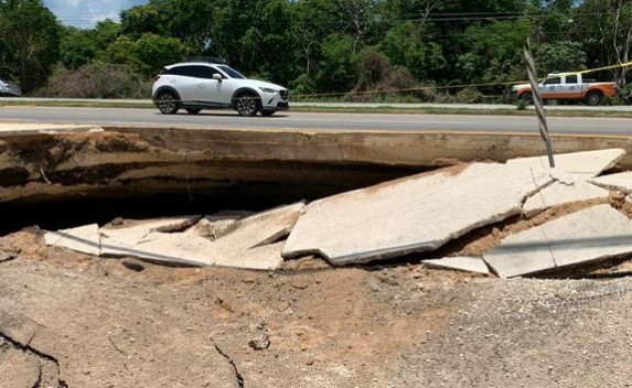 Cabe señalar que desde 2015, se abrió el socavón en un tramo de 12 metros de longitud, dejando al descubierto una caverna con agua debajo de la carretera. En agosto del 2016 se presentó una situación similar en el carril de sur a norte rumbo a Cancún a la altura del hotel Iberostar.