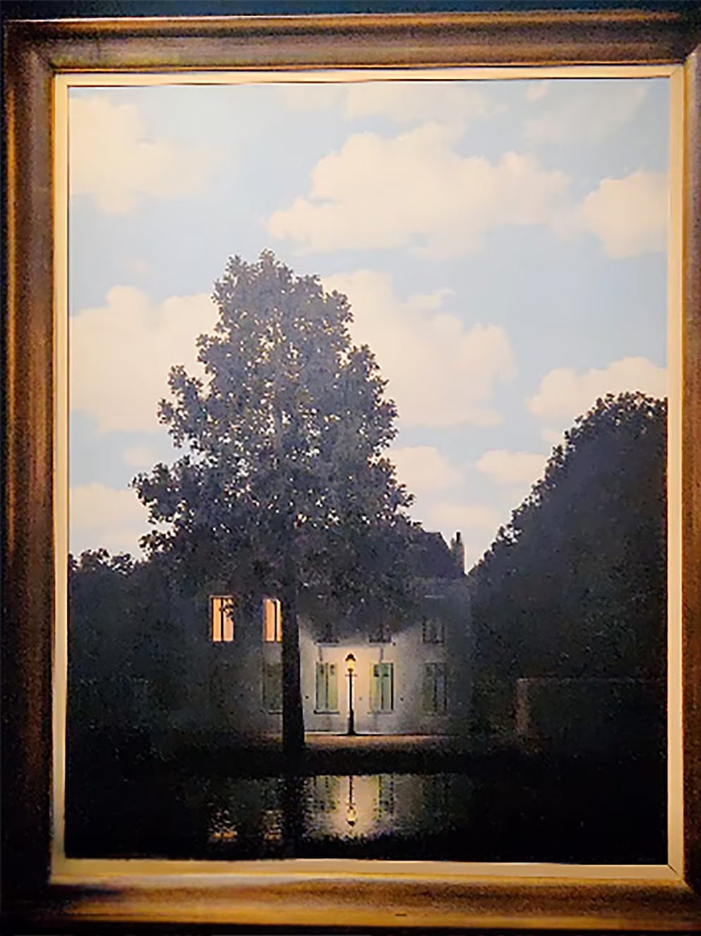 “Empire of Light” es parte de una serie de obras en las que Magritte exploró el contraste entre luz y oscuridad, un tema recurrente en su producción artística. La pintura muestra una escena aparentemente contradictoria: una casa iluminada por un poste de luz en plena noche, mientras un cielo azul brillante domina el fondo.