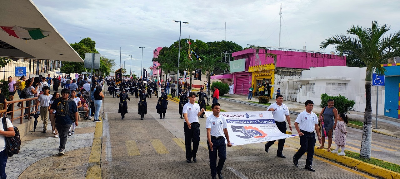 CHETUMAL, 16 de septiembre. – Con un marcado espíritu patriótico, el Instituto Tecnológico de Chetumal (ITCh) se sumó al desfile conmemorativo del CCXV Aniversario de la Independencia de México, destacando por la energía y disciplina de su contingente. Encabezados por la Escolta y la Banda de Guerra, las y los estudiantes marcharon con firmeza, reflejando los valores de compromiso y unidad que caracterizan a la institución.