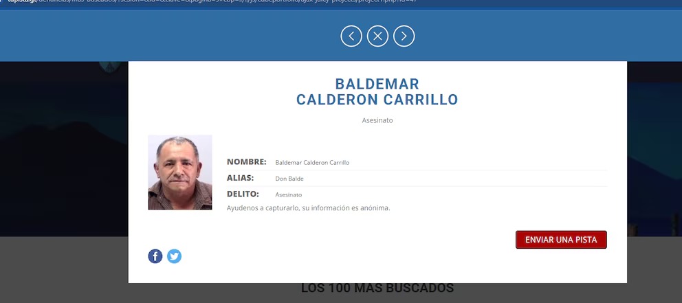 Baldemar Calderón Carrillo, originario de Guatemala, figuraba en la lista de los más buscados del Ministerio de Gobernación de ese país, señalado por el delito de asesinato. Su perfil fue difundido a través de la plataforma internacional Crime Stoppers, una red de participación ciudadana que opera en colaboración con cuerpos policiales como la Policía Nacional Civil (PNC) para facilitar la captura de delincuentes con orden judicial.
