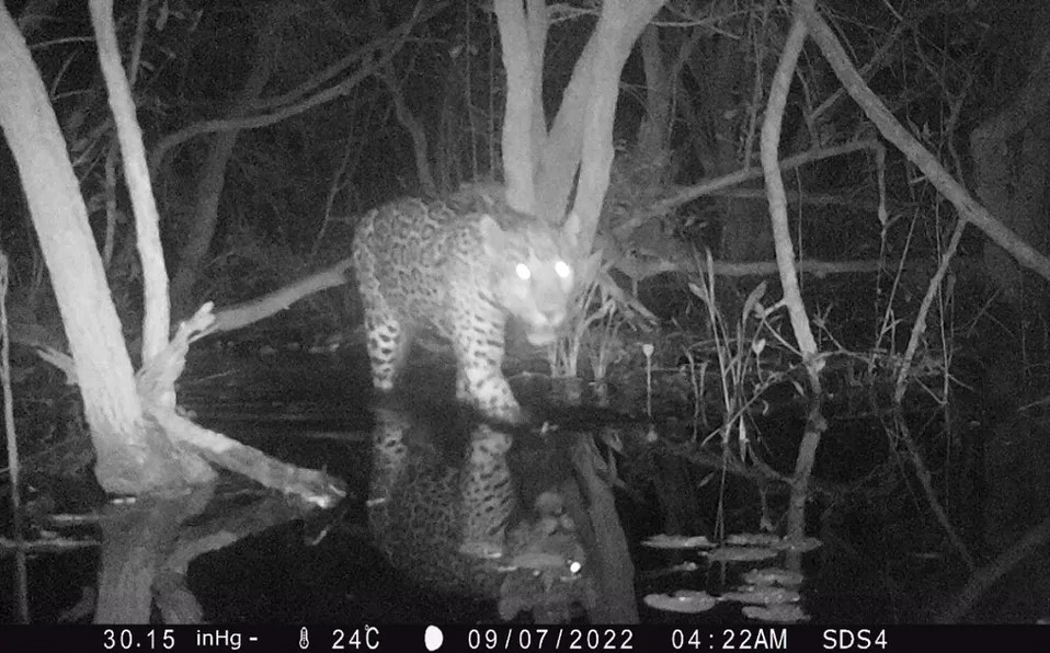 Asimismo, en la zona núcleo de la Reserva de la Biosfera Ría Lagartos, la iniciativa privada UMA San Manuel logró fotografiar 14 jaguares distintos por medio de sus rosetas únicas, un hallazgo que confirma que la población local está en aumento moderado.