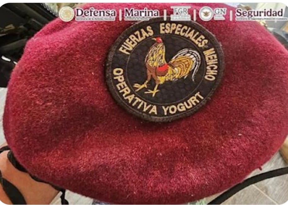 El Gabinete de Seguridad informó que durante la detención de nueve personas fue localizado equipo táctico con la leyenda “Fuerzas Especiales Mencho. Operación Yogurt”
