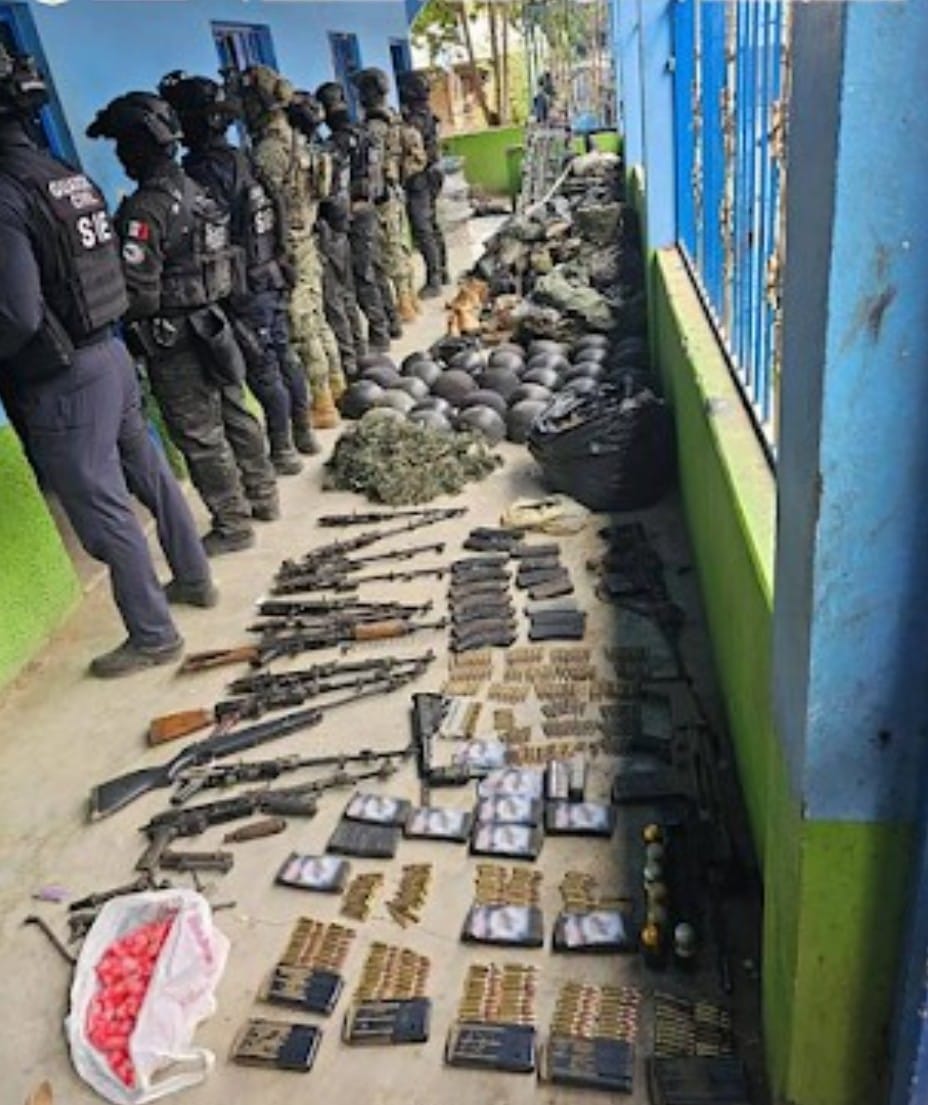 Así, personal naval encabezó un operativo en el que fue agredido por los criminales con armas de alto poder, con saldo de 12 sicarios abatidos, tres marinos heridos y nueve detenidos. Durante la intervención, los efectivos navales, en coordinación con la SSPC, hallaron en el lugar armamento, explosivos artesanales, equipo táctico, uniformes militares y boinas.