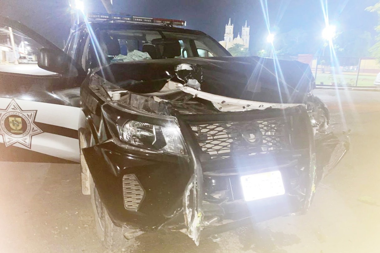 La patrulla marcada con el número DPM 528 sufrió serios daños y a empujones se la llevaron al palacio donde, aproximadamente una hora después arribó una grúa para llevársela de inmediato a Mérida.