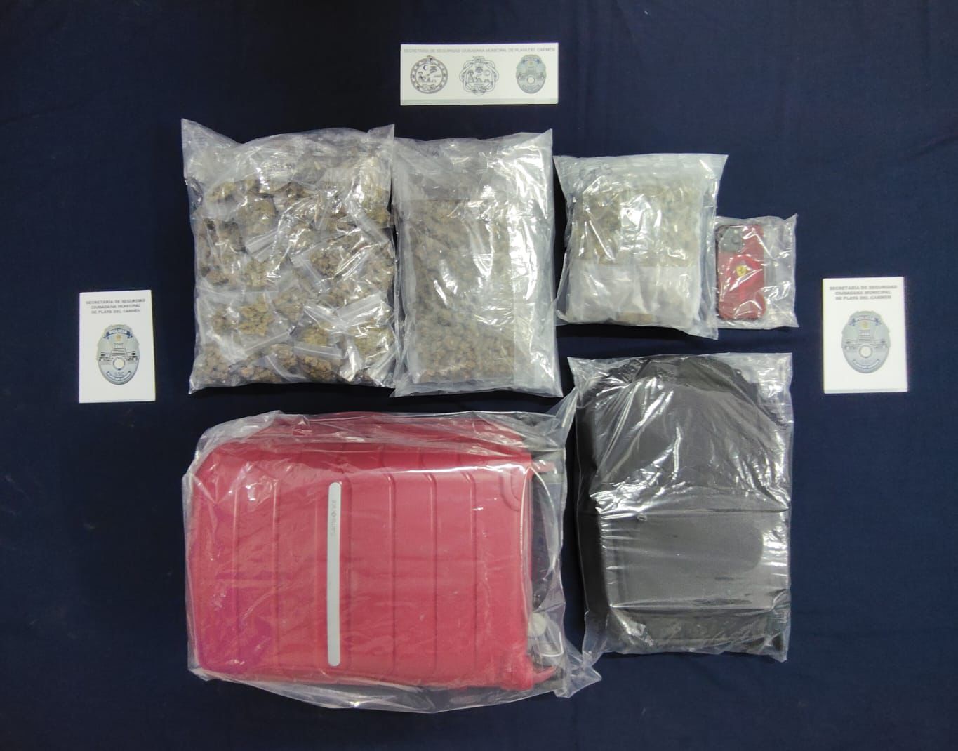 Policías municipales, durante recorrido en calles del fraccionamiento Xcacel, observaron a un individuo al interior de un vehículo manipulando bolsitas con vegetal verde y seco. Tras una inspección, se aseguraron diversos indicios, entre ellos múltiples dosis con las características de la droga conocida como marihuana, dos paquetes adicionales, una maleta, una mochila, un celular y un vehículo. El detenido se identificó como Luis “N”, de 40 años, originario de Veracruz.