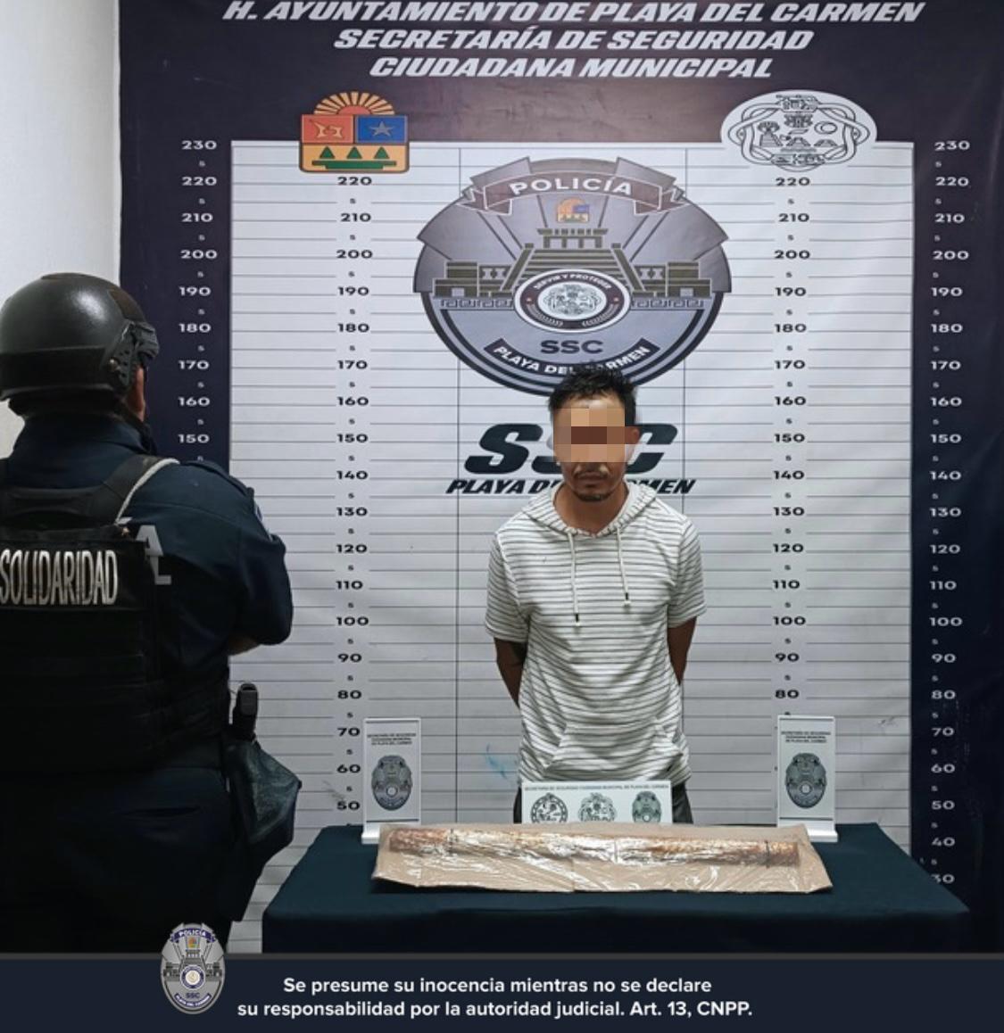 Playa del Carmen, a 07de junio de 2025. La Secretaría de Seguridad Ciudadana de Playa del Carmen detuvo a una persona del sexo masculino por su presunta participación en los delitos de lesiones y daños, en la colonia Ejido.