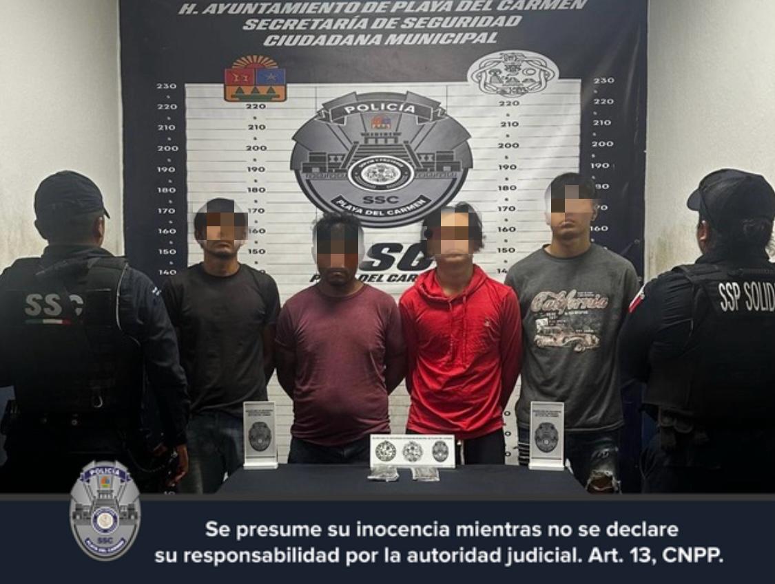 Cristhian “N”, de 21 años, originario de Chiapas; José Alejandro “N”, de 31 años, originario de Quintana Roo; Sergio Adrián “N”, de 26 años, originario de Tabasco; y Edwin Gael “N”, de 30 años, originario de Yucatán, fueron detenidos y puestos a disposición de la Fiscalía General del Estado para los fines legales correspondientes.