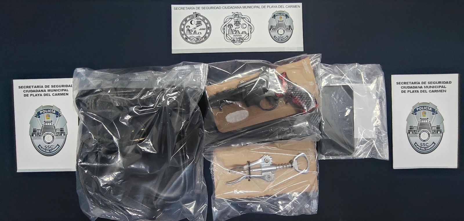 Durante la intervención, se aseguraron un teléfono celular, un objeto tipo arma de plástico y una bolsa con un sacacorchos metálico, mismos que fueron reconocidos por la persona agraviada como utilizados para amagarlo y despojarlo de sus pertenencias.