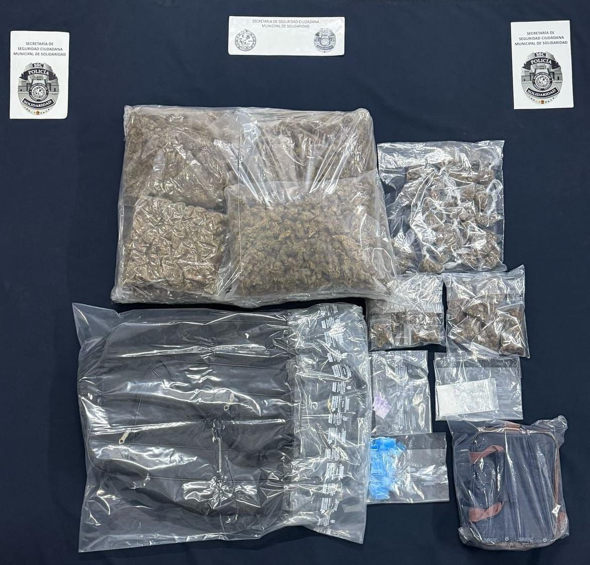 Durante un recorrido de vigilancia, elementos preventivos observaron a una persona que intentó huir al notar la presencia policial, arrojando una maleta al suelo. En una inspección, se encontraron 8 paquetes de posible marihuana, así como 86 envoltorios con características de marihuana, cristal y cocaína, todos dentro de una mochila.