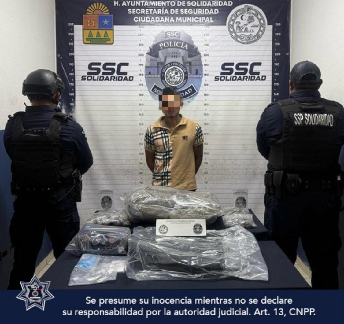 Luis “N”, de 29 años, originario de Quintana Roo, fue detenido y puesto a disposición de la Fiscalía Especializada en Delitos Contra la Salud en su modalidad de Narcomenudeo para los fines legales correspondientes.