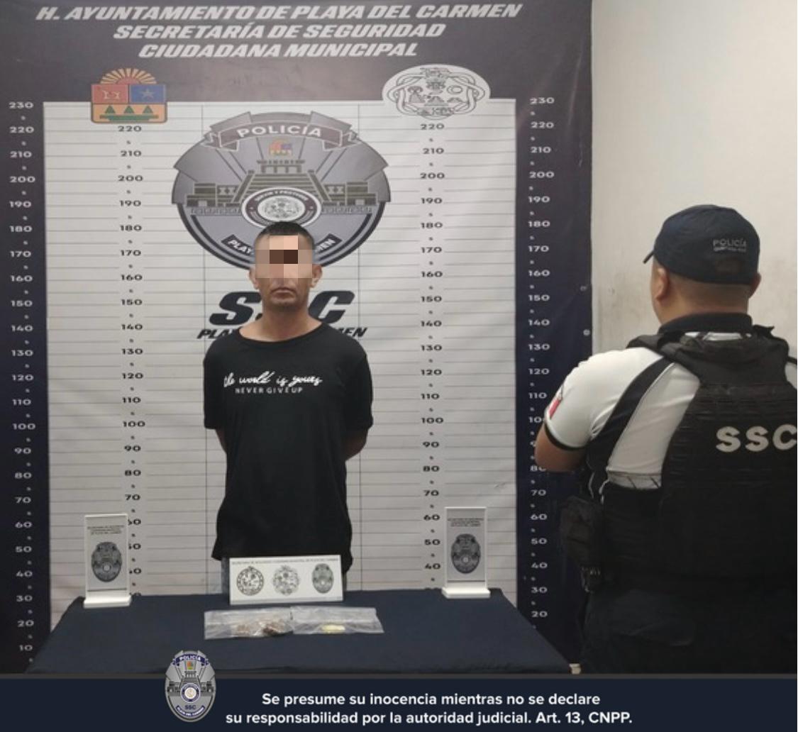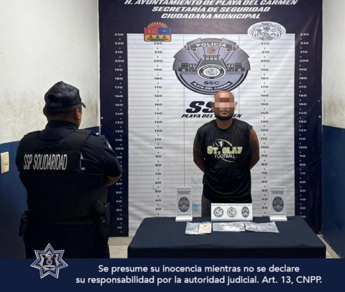 Playa del Carmen, a 05 de junio de 2025.- La Secretaría de Seguridad Ciudadana de Playa del Carmen aseguró a tres persona por presuntos delitos contra la salud durante recorridos en varios puntos de la ciudad.