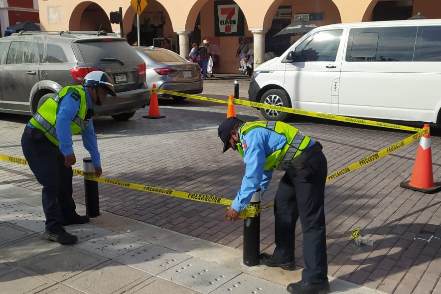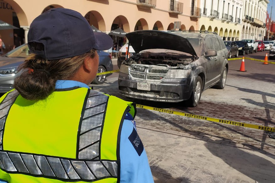 Elementos Municipales Ayudan a Sofocar un Incendio de un Automotor Junto a los Bajos de Palacio Municipal de Mérida