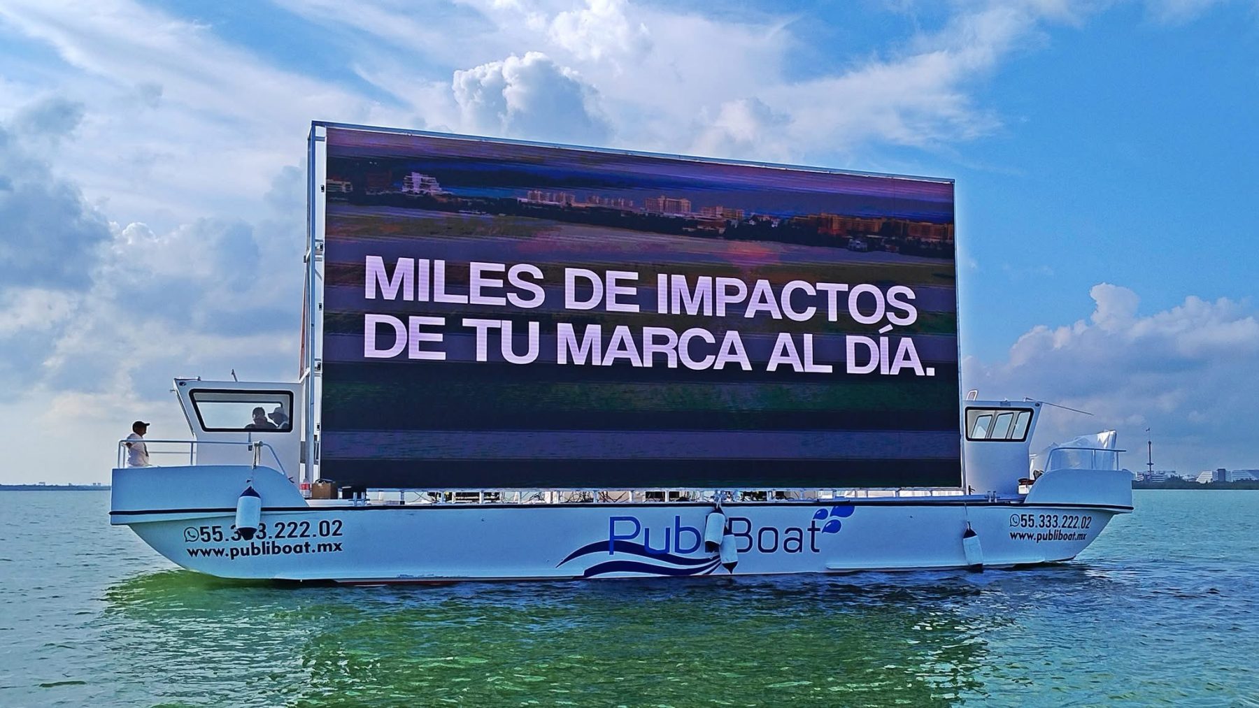De acuerdo con la Secretaría de Ecología y Desarrollo Urbano de Benito Juárez, la empresa “PubliBoat” ha comenzado a operar desde hace algunos meses, promocionando anuncios de restaurantes, hoteles, plazas comerciales y centros de entretenimiento. Sin embargo, estos servicios no cuentan con permisos municipales de imagen urbana ni licencia de funcionamiento.