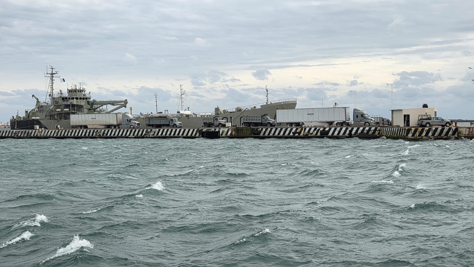 De acuerdo con lo observado en el recinto portuario, camiones y tráileres de la Marina arribaron con insumos humanitarios debidamente embalados y listos para su transportación.