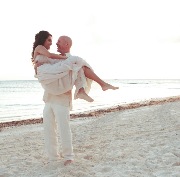 Posterior a esta boda espiritual la pareja se casó por lo civil en Beverly Hills, California. En la boda estuvieron la exesposa del actor, Demi Moore, así como las tres hijas que tienen en común: Rumer, de 37 años; Scout, de 34 años, y Tallulah, de 31 años.