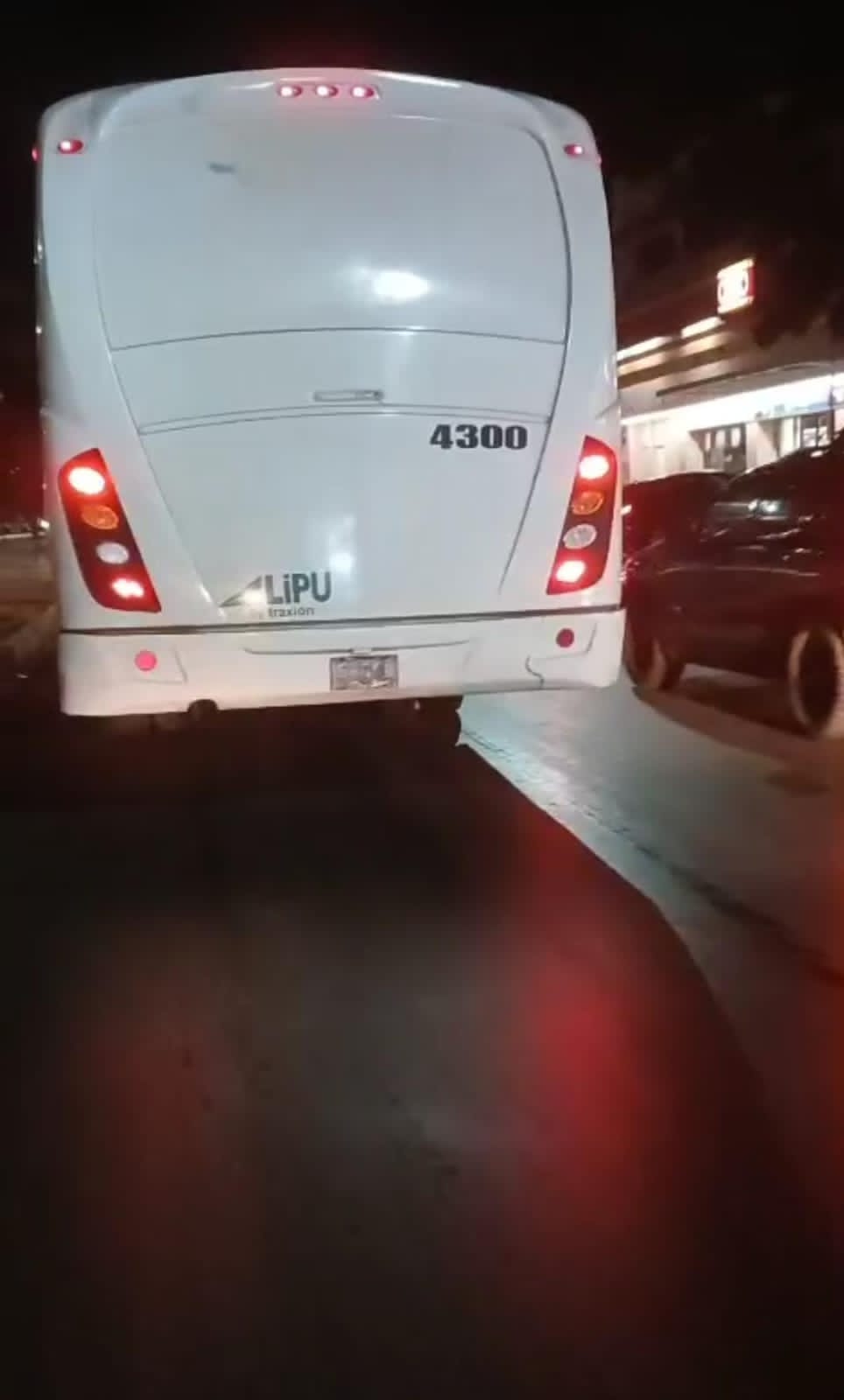 Alrededor de las 11:40 p.m., a la altura de la glorieta del Ceviche, un motociclista fue presuntamente agredido por el conductor del autobús número 4300, quien, según el afectado, intentó sacarlo del camino al aventarle el vehículo pesado.
