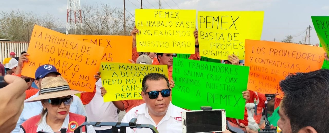 Petróleos Mexicanos (Pemex) adeuda más de mil millones de pesos a empresarios afiliados a la Cámara Mexicana de la Industria de la Construcción (Cmic), quienes marcharon este jueves en el municipio de Salina Cruz –ubicado en el Istmo de Tehuantepec— para demandar a la empresa dicho monto, el cual corresponde a obras ya realizadas.