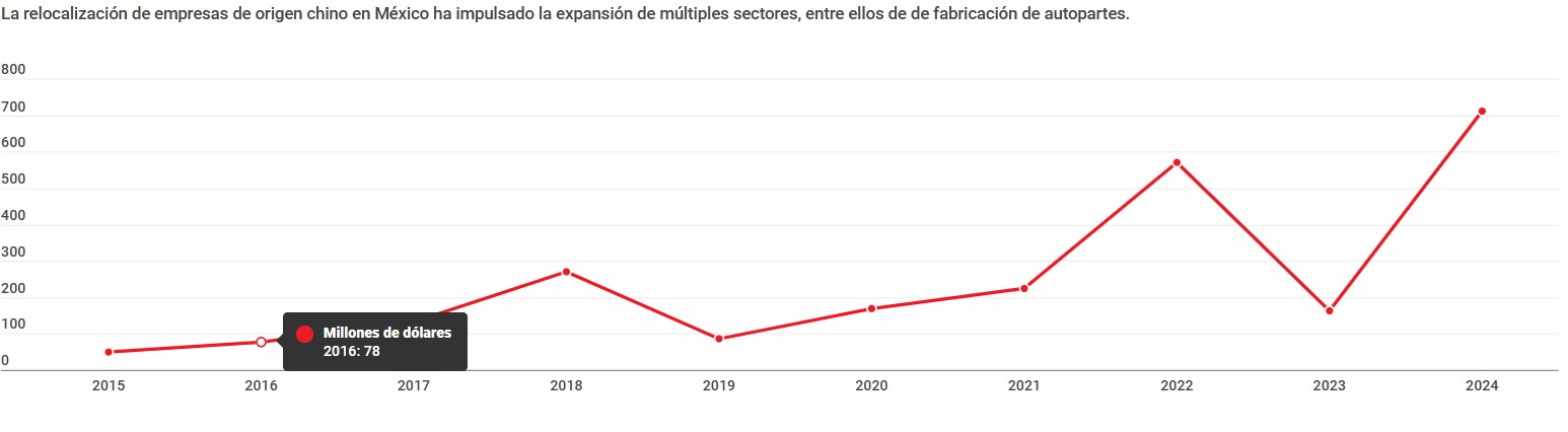 La relocalización de empresas de origen chino en México ha impulsado la expansión de múltiples sectores, entre ellos de de fabricación de autopartes.