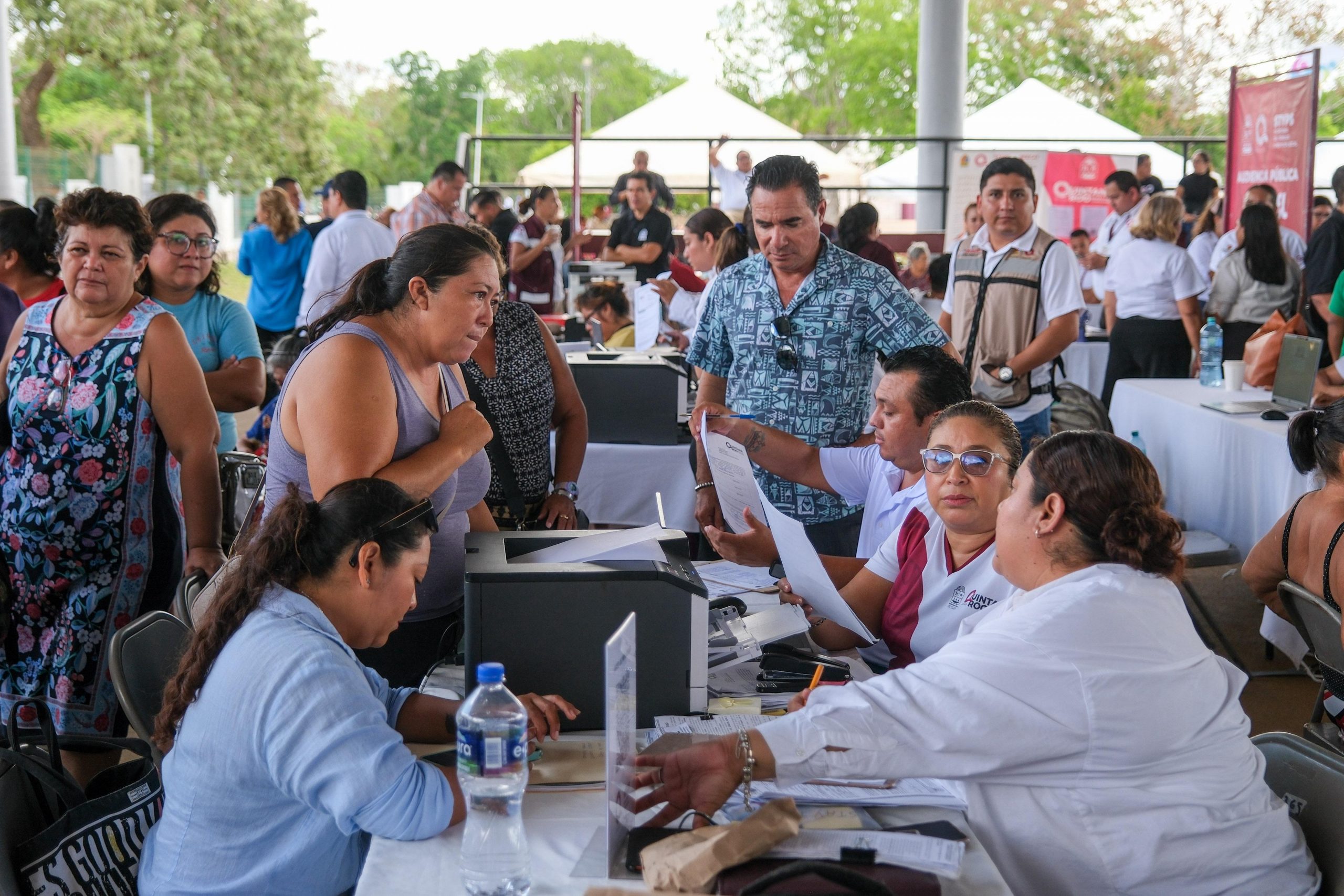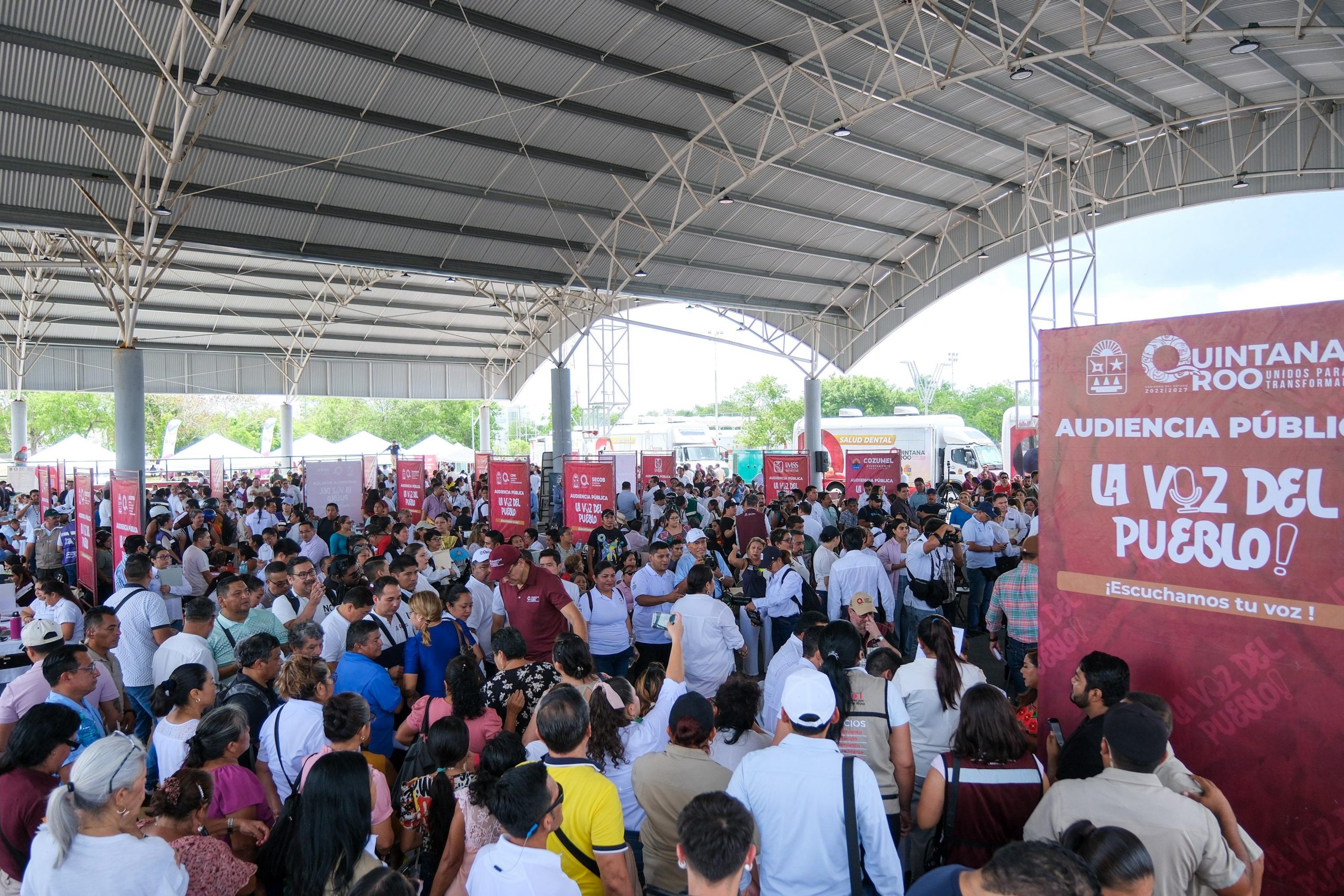 Durante la audiencia pública “La Voz del Pueblo” que se realizó en el domo Bicentenario de la isla de Cozumel, la gobernadora Mara Lezama Espinosa, y todo el equipo del gobierno estatal, municipal y federal, proporcionaron mil 408 atenciones, entre las que destacan entregas de apoyos, prótesis, triciclos, asesorías sobre títulos de propiedad, así como trámites de licencias, actas de nacimiento, CURP, etc.